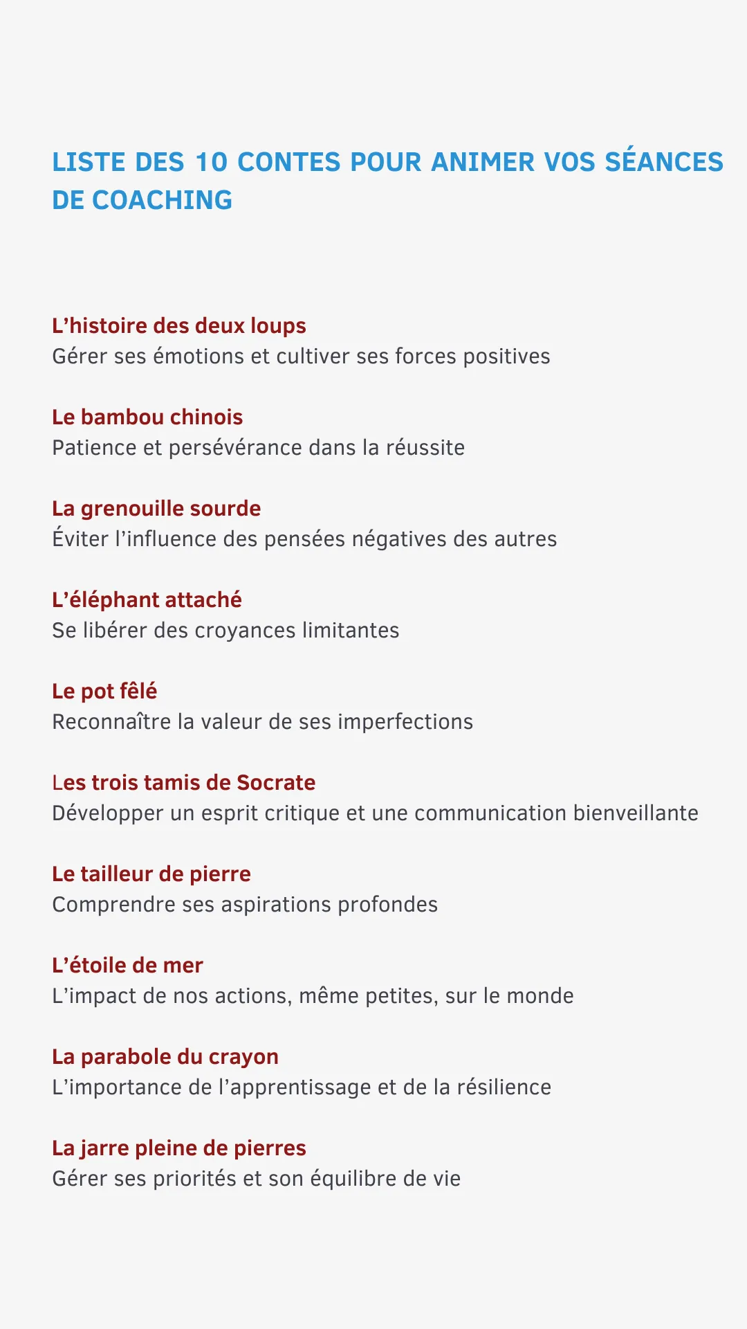 10 contes clés adaptés au coaching :