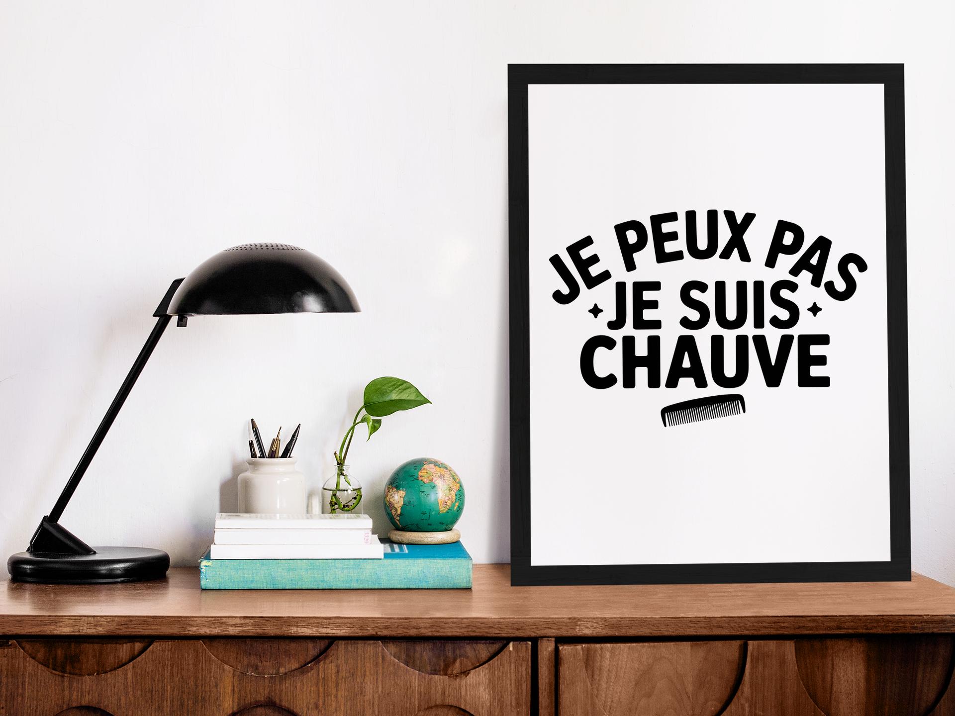 Libérez votre crâne avec style grâce à notre superbe affiche « Je peux pas je suis chauve » ! Pensée pour ceux qui préfèrent le vent dans les cheveux qu’ils n’ont pas, elle est la touche d’humour parfaite pour personnaliser votre déco. Osez afficher votre fierté capillaire (ou son absence) avec ce clin d’œil enjoué. Un cadeau idéal pour ceux qui aiment rire de tout, même de leurs follicules paresseux !