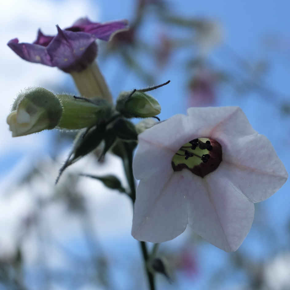 Cette variété de tabac ornemental porte de nombreuses fleurs de couleur rose vif à blanc fonction de la maturité de la fleur. La plante peut atteindre 1,50 mètre en hauteur et apporte du volume à un massif. Au Brésil, les fleurs sont fécondées par des colibris.