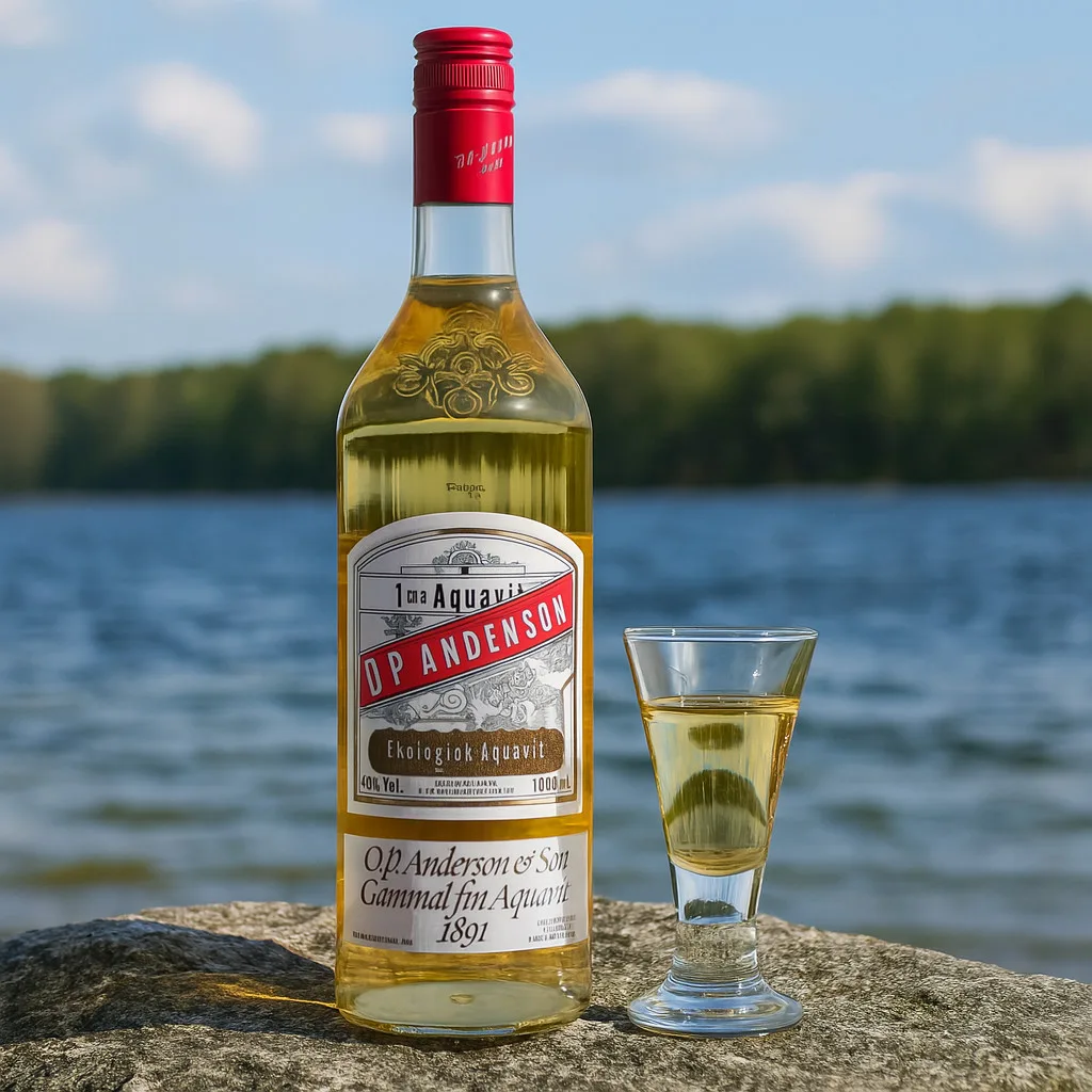 Servez O.P. Anderson très frais (4–6 °C), pur en snaps, ou en base de cocktails comme un Dirty Martini nordique. Excellent en accompagnement de saumon fumé, hareng mariné, fromages affinés et spécialités scandinaves (crayfish, smörgåsbord).