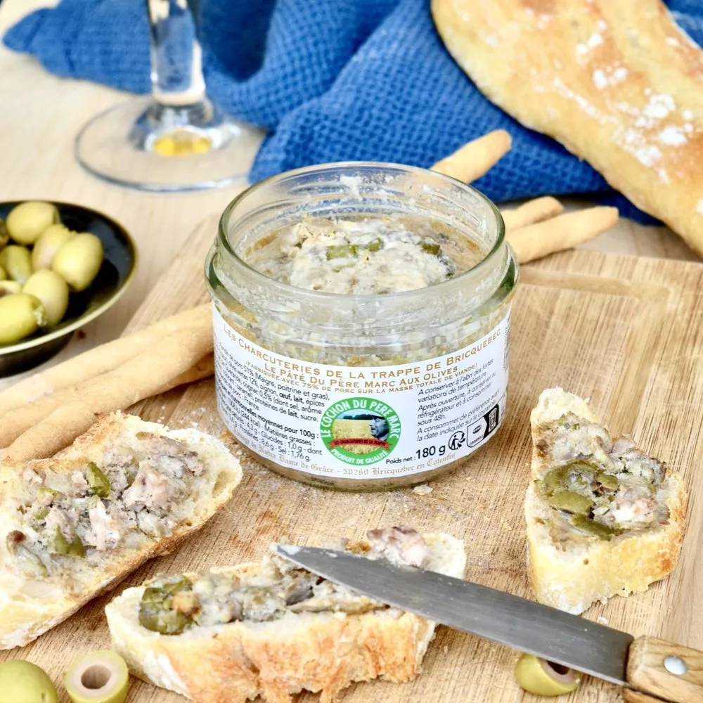 Voilà enfin le pâté aux olives, petit dernier de l’abbaye Notre-Dame-de-Grâce de Bricquebec ! Cette abbaye trappiste française est bien connue pour ses pâtés… Et oui, car c’est la seule à avoir un laboratoire : « Les Charcuteries de la Trappe » ! Même si la communauté n’y travaille pas, Père Marc la dirige et s’occupe des employés, de la production et des recettes… Rien que ça ! Il faut dire que depuis 1960, moment où l’abbaye de Bricquebec accueille ses premiers porcs, Père Marc ne s’est jamais arrêté ! Tous les pâtés sont à base d’ingrédients d’origine naturel, et produit selon le même savoir-faire traditionnel qu’au début. C’est pas beau ça ? Avec ce pâté aux olives, l’équilibre est parfait entre le goût du pâté de campagne et celui des olives vertes. Ainsi, on sent bien les olives sans pour autant dénaturer le pâté de campagne, c’est une vraie réussite ! Pour apprécier au mieux ce pâté aux olives rien de plus simple : à l’apéro, avec du pain grillé et un petit rosé. C’est parti pour un apér’olive de qualité ! ?
