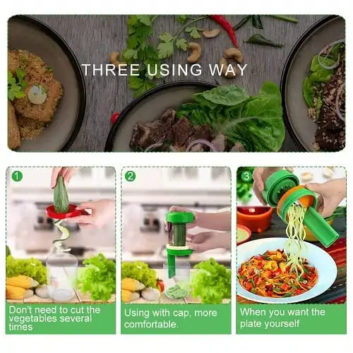 1. NOUVELLE CONCEPTION 2018: Notre trancheuse à légumes à spirale portative est livrée avec un récipient. Vous n’avez donc pas besoin de placer votre propre récipient dans le fond. Excellent pour préparer des repas de légumes sains.