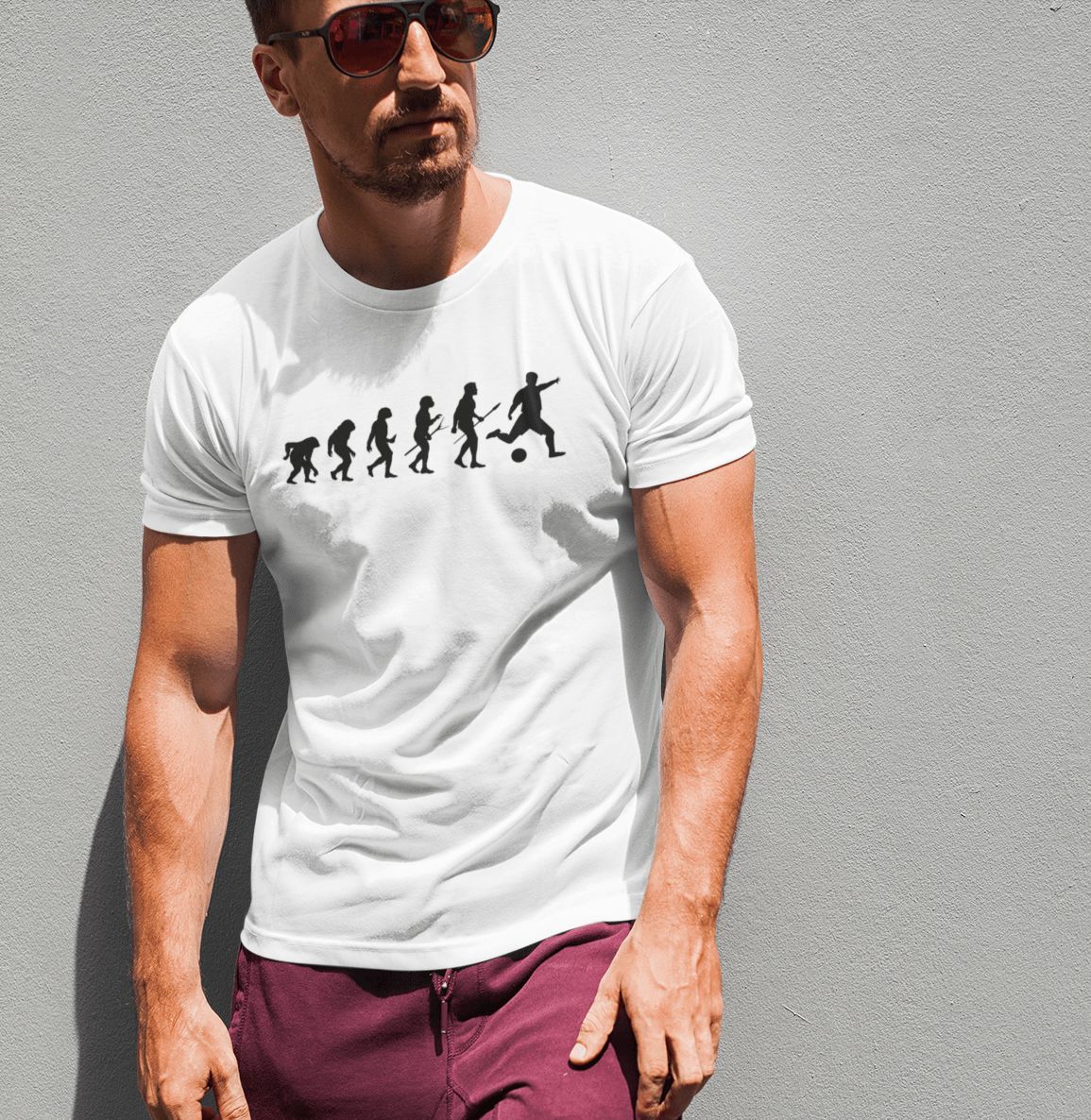 Voilà la vraie évolution de l’espèce humaine: Du singe au footballeur ! Si vous êtes un fan de foot, alors ce t shirt est fait pour vous. Pour offrir ou vous faire plaisir, ce t shirt foot sera un très bon choix. Bonne humeur garantie 🙂