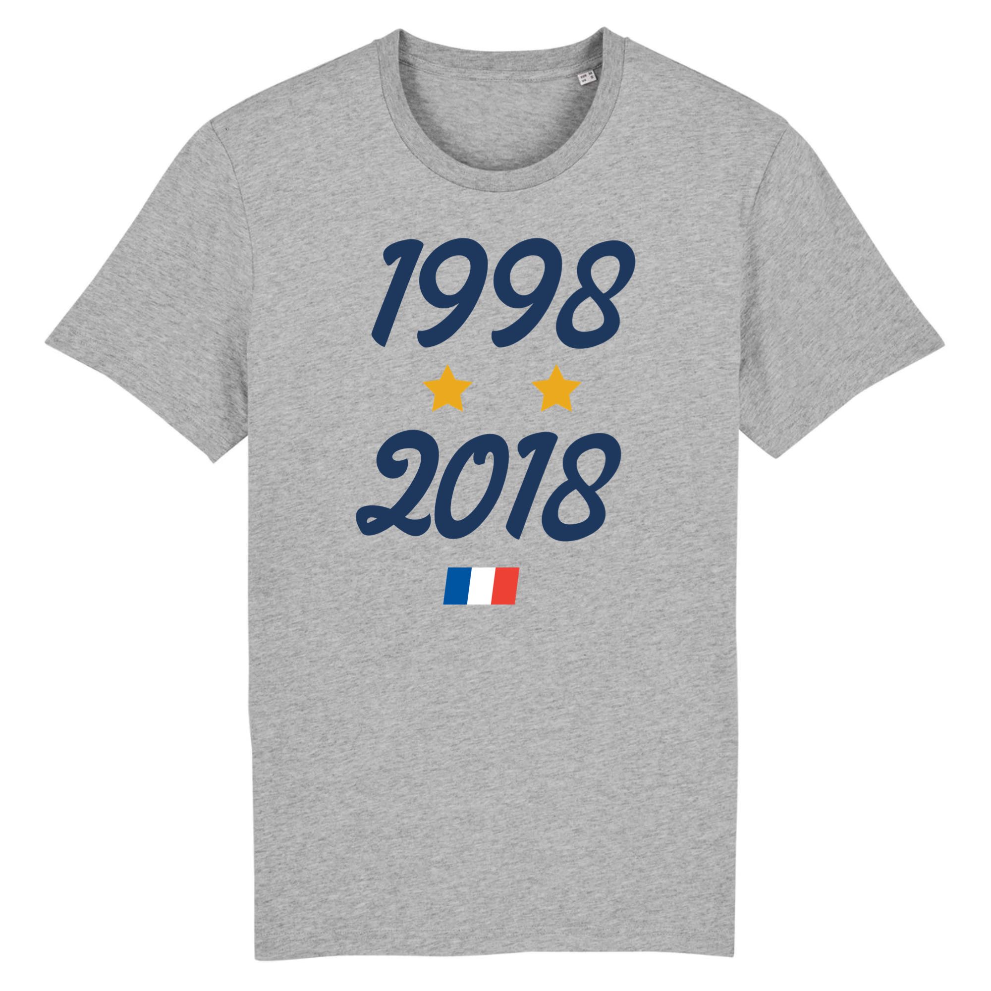 Évènement mémorable et marquant l’histoire, la France remporte la coupe du monde de football le 15 juillet 2018 à Moscou, pour la 2ème fois de l’histoire 20ans plus tard. Portez fièrement ce t shirt de champion du monde avec ces 2 étoiles jaunes et les années de victoires, 1998 et 2018. Pour offrir ou vous faire plaisir, ce t shirt foot sera un très bon choix. Bonne humeur garantie 🙂