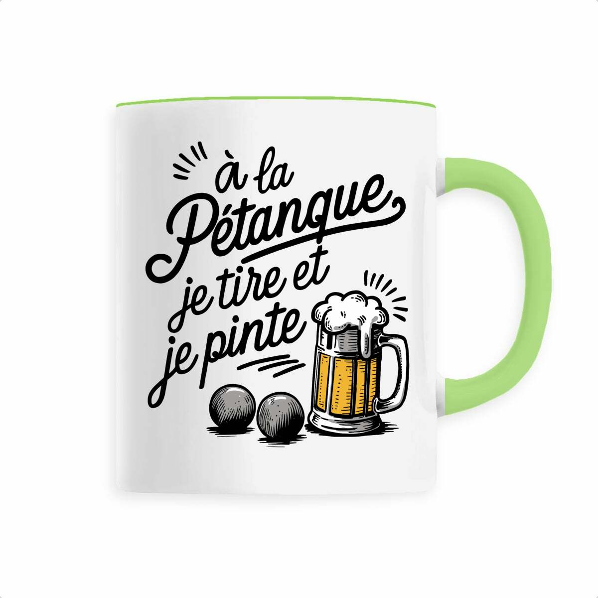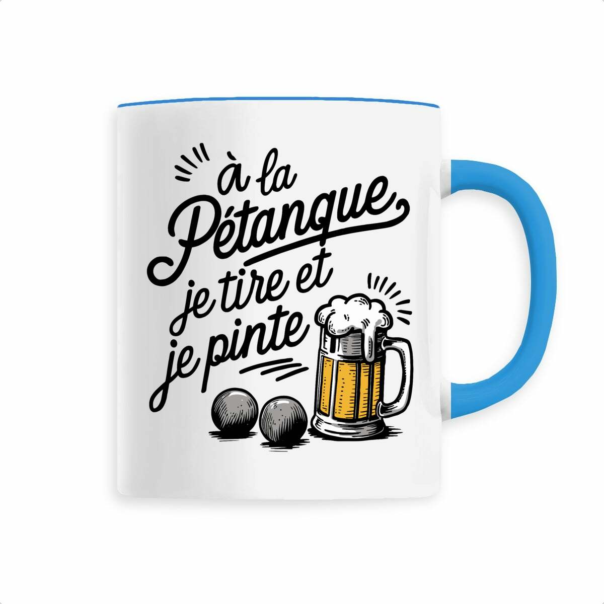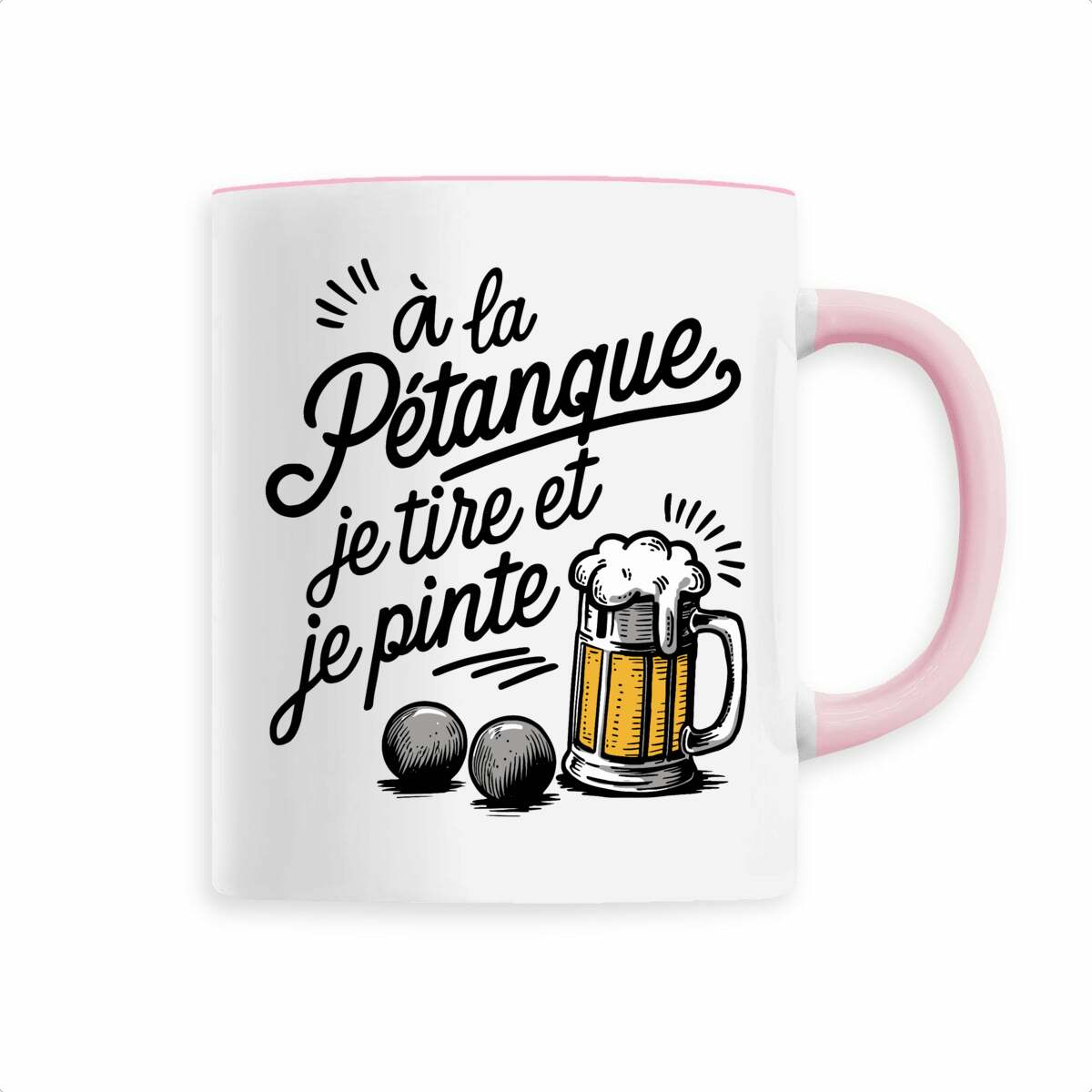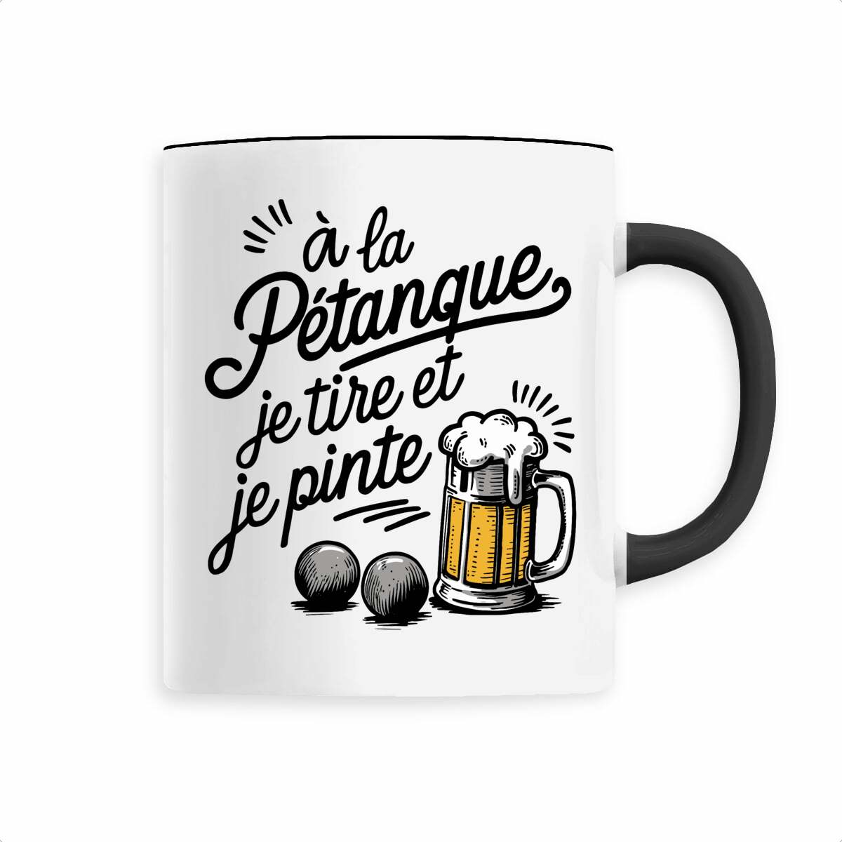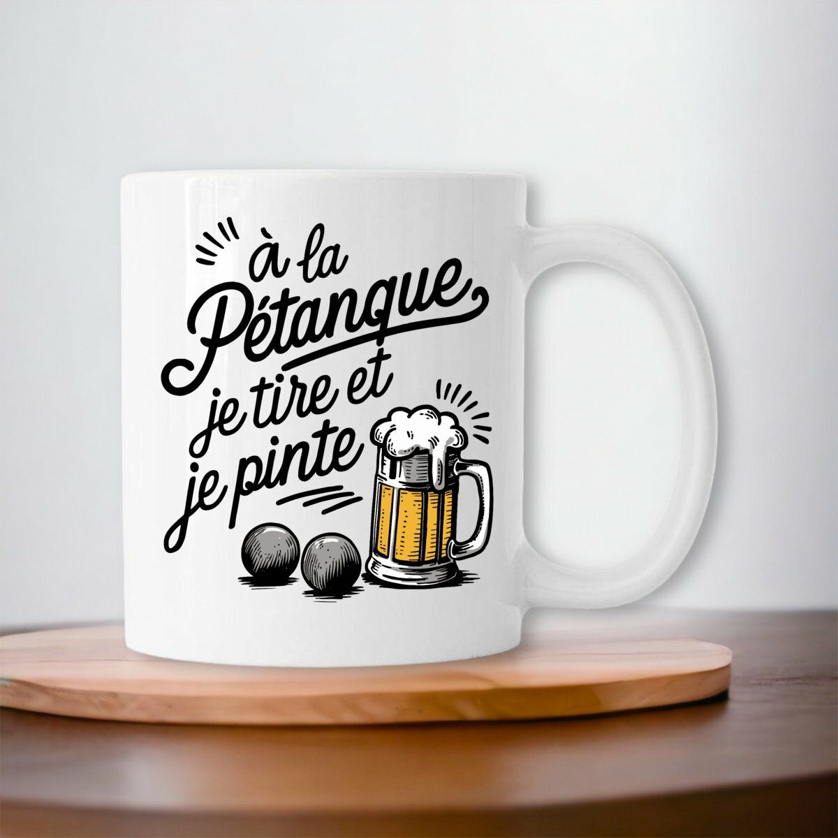 Avec le mug « À la pétanque je tire et je pinte », affichez votre amour pour ce sport tout en dégustant votre boisson préférée. Parfait pour les amateurs de pétanque, ce design humoristique saura faire sourire vos amis lors de vos parties endiablées. Un cadeau idéal pour ceux qui adorent lancer les boules et lever leur verre ! Partagez votre passion avec style et humour.