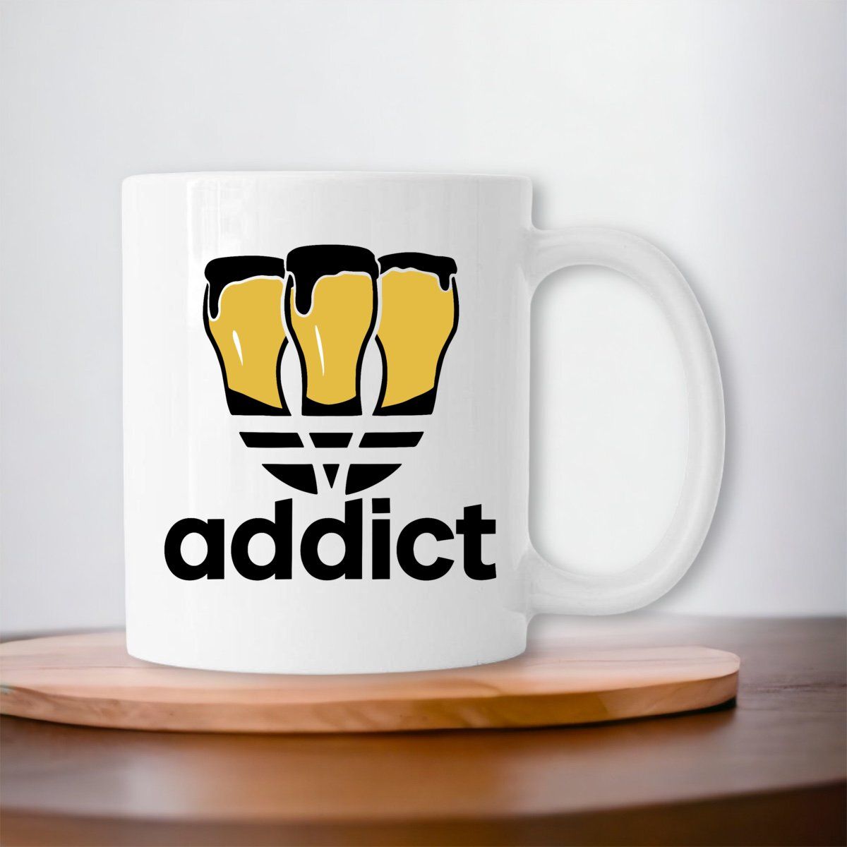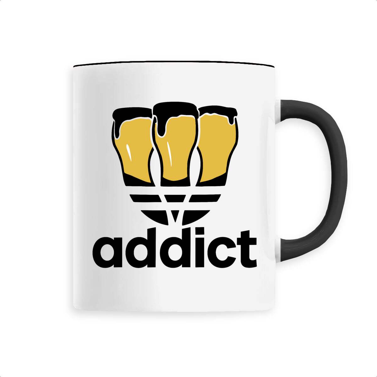 Votre passion pour la bière affichée fièrement ! Ce Mug « Addict » est parfait pour les amateurs de bonnes mousseuses. Avec ce design humoristique et élégant, vous affirmerez haut et fort votre amour pour la bière, que ce soit au bureau ou à la maison. Faites sourire vos proches en leur offrant ce mug unique. Le cadeau idéal pour tous les aficionados de bière, mêlant style et bonne humeur. Cheers! 🍻
