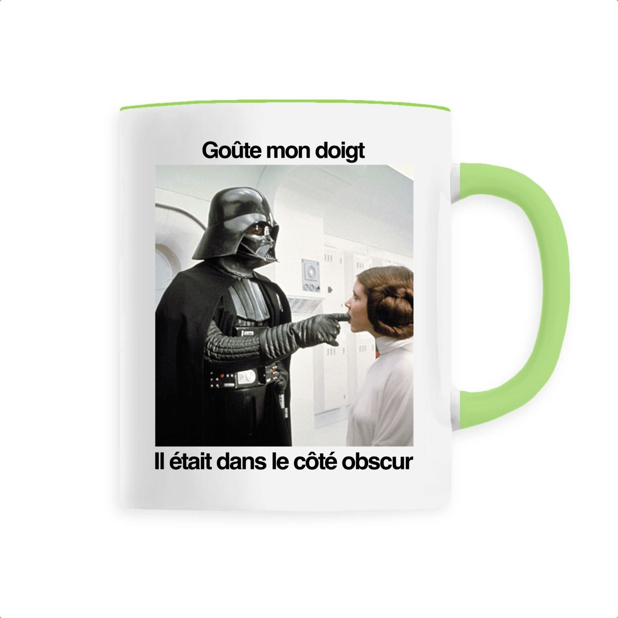 Mug original avec une image parodiée ou Dark Vador fait goûter son doigt venant du côté obscur à la princesse Leia. Que vous soyez un fan de Star Wars ou que vous aimez les mugs originaux et décalés, ce modèle sera un très bon choix! Bonne humeur garantie 🙂