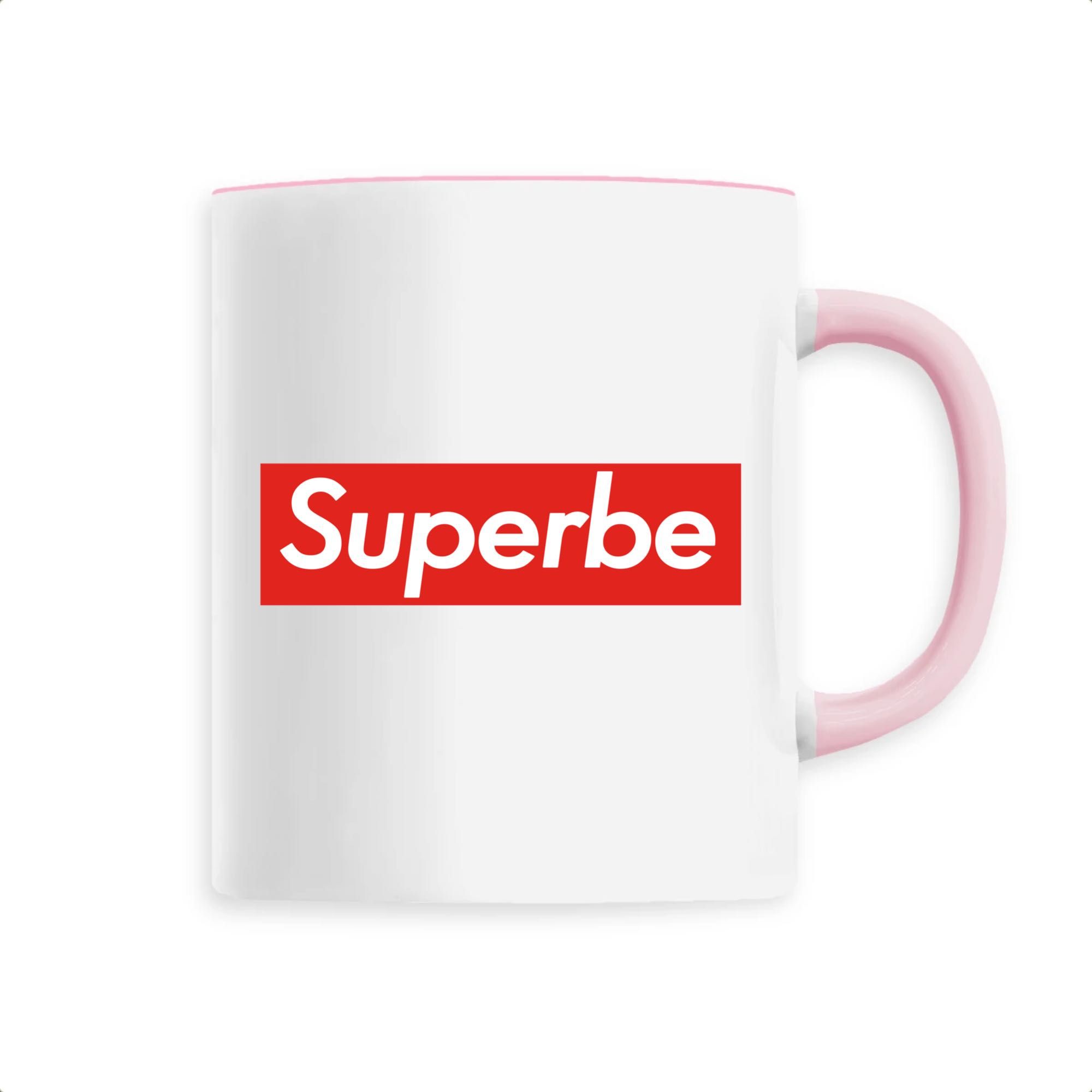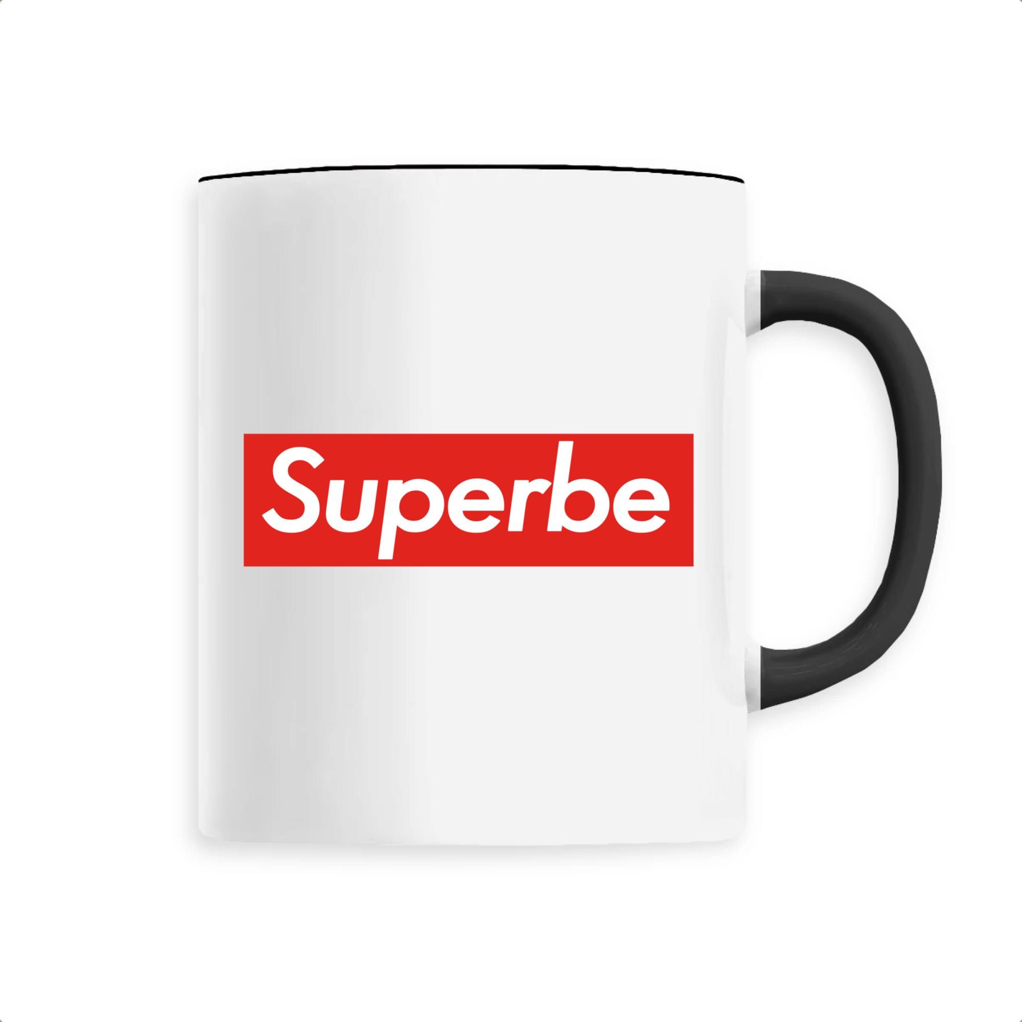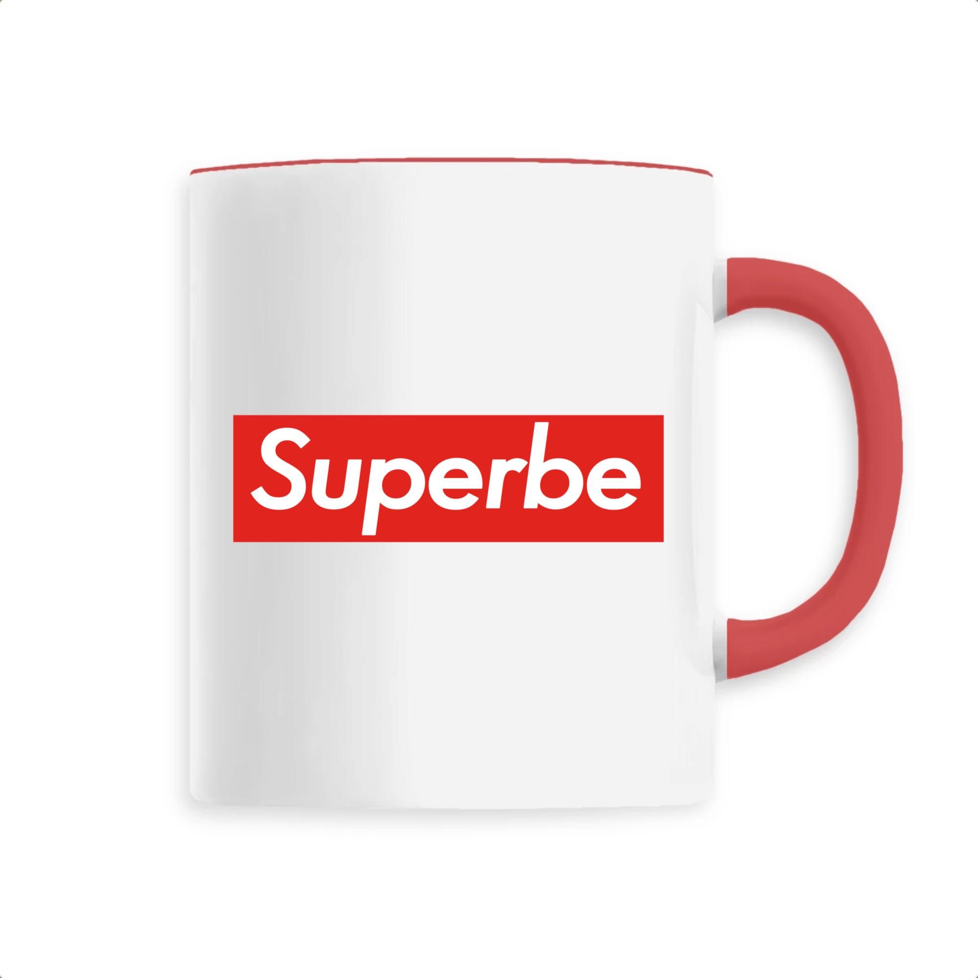Mug original avec un message « superbe » sur fond rouge. Ideal pour offrir un cadeau original ou se faire plaisir.