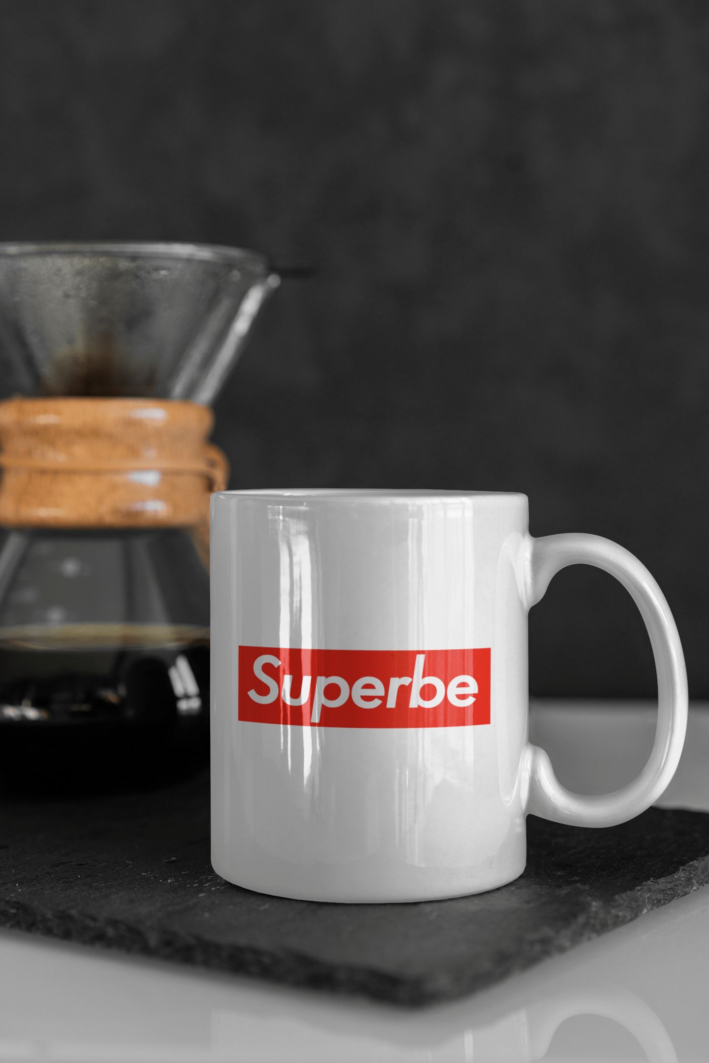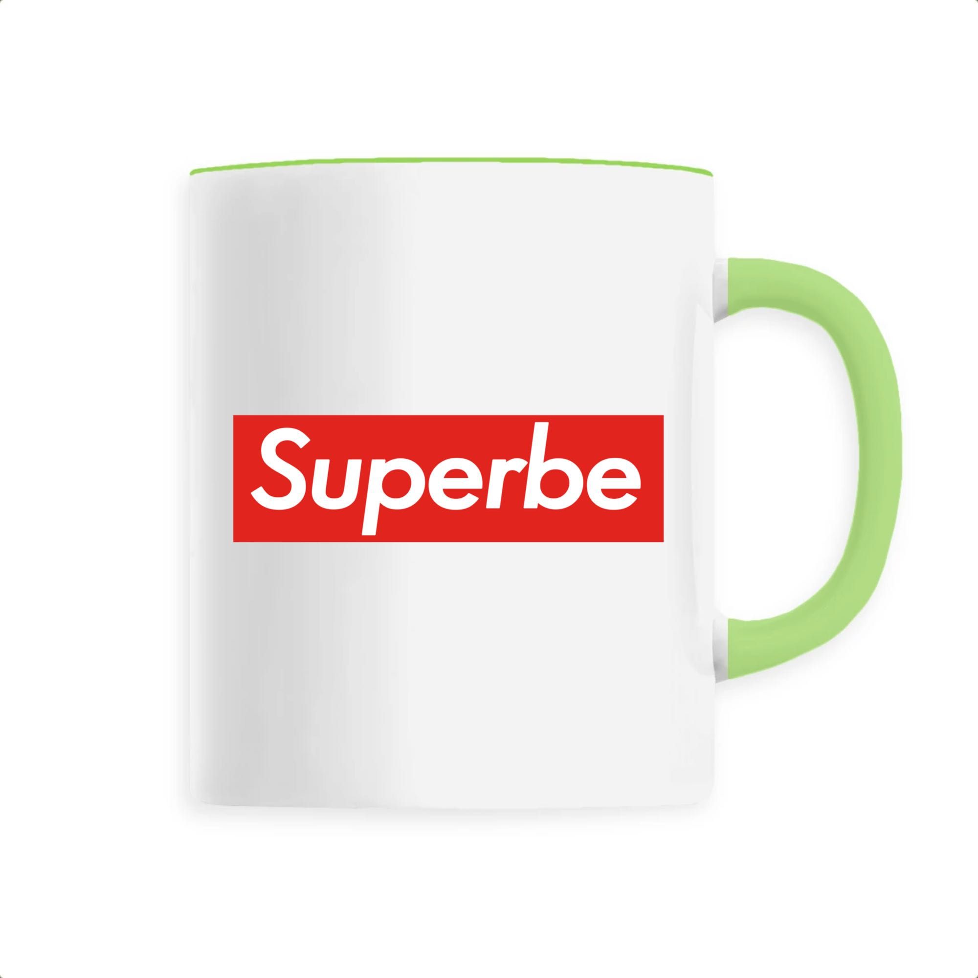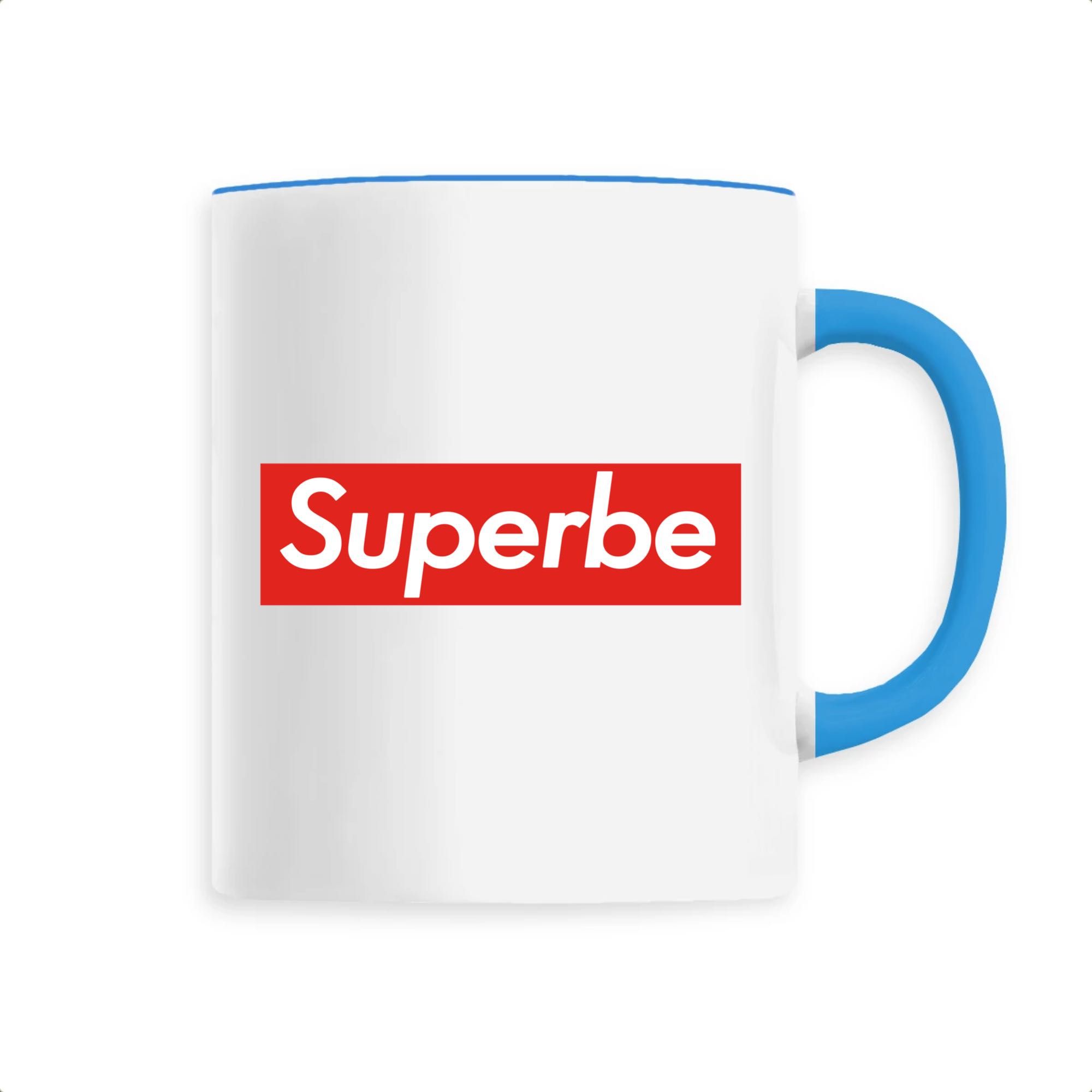 Mug original avec un message « superbe » sur fond rouge. Ideal pour offrir un cadeau original ou se faire plaisir.