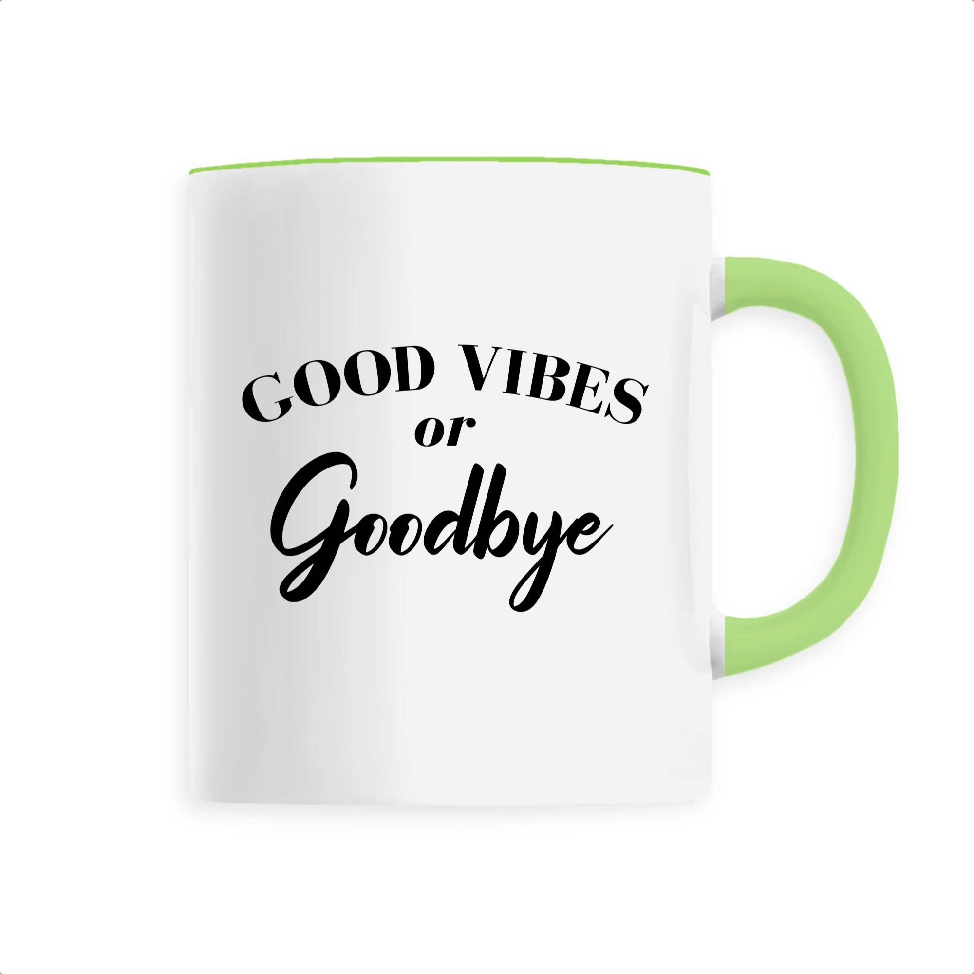 Si vous aimez vivre dans la positive attitude, ce mug « Good vibes or Goodbye », représentera alors bien votre philosophie de vie, lors de la pause café. Pour offrir un cadeau original ou se faire plaisir avec un mug à message, ce sera un très bon choix! Good vibes garantie 🙂
