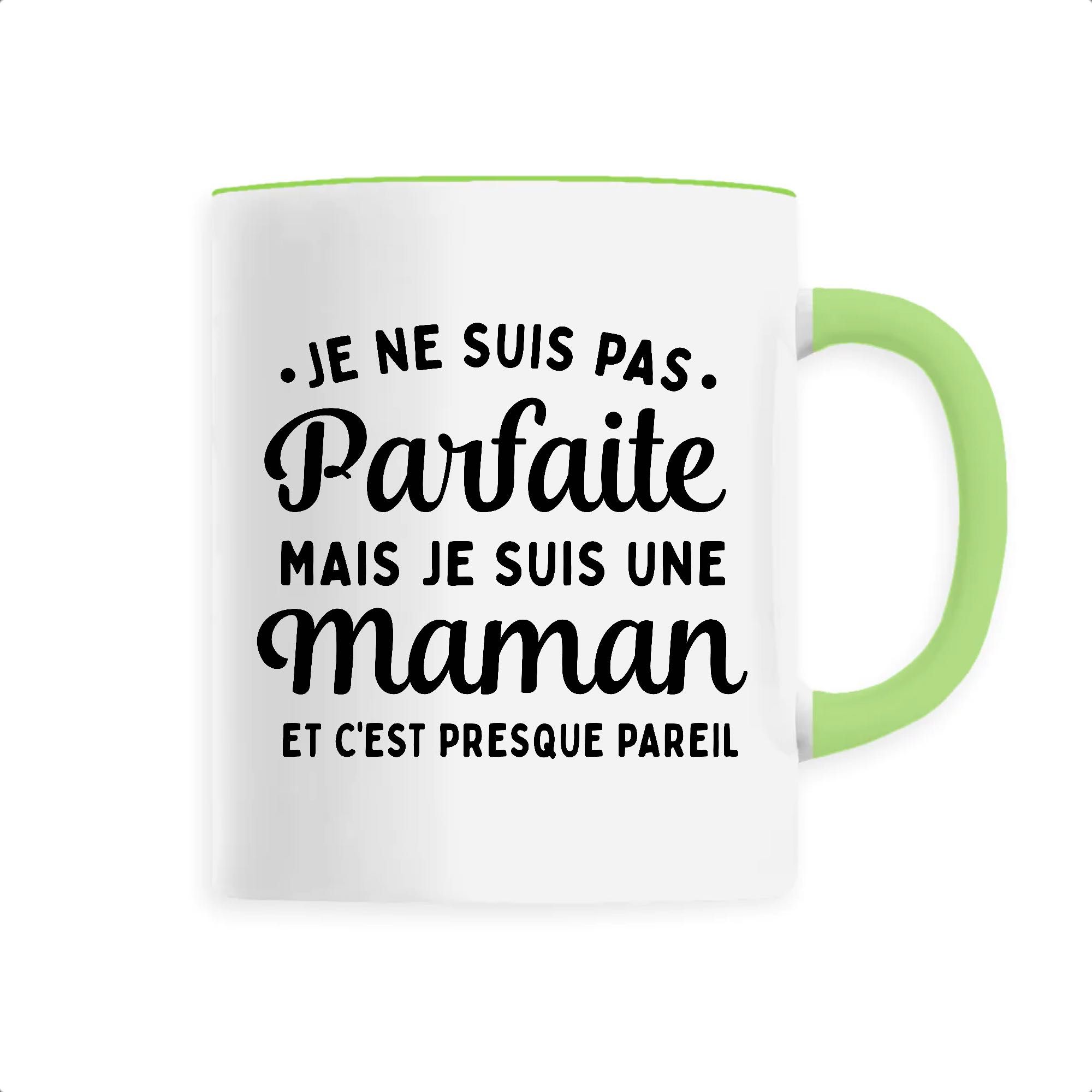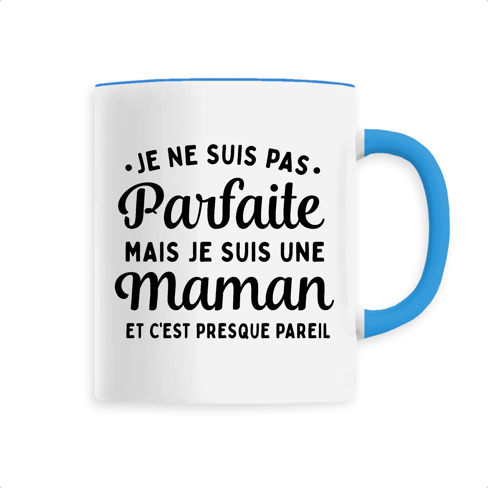 Offrez un cadeau plein d’amour et d’humour avec notre mug « Maman parfaite »! Destiné spécialement aux mamans, ce mug arbore un design original qui fera sourire chaque matin. Le texte touchant et drôle « Je ne suis pas parfaite, mais je suis une maman et c’est presque pareil » ravira toutes les mères qui s’y reconnaîtront. Un présent idéal pour la fête des mères, un anniversaire ou juste pour dire merci. N’attendez plus, montrez à votre maman combien elle compte pour vous!