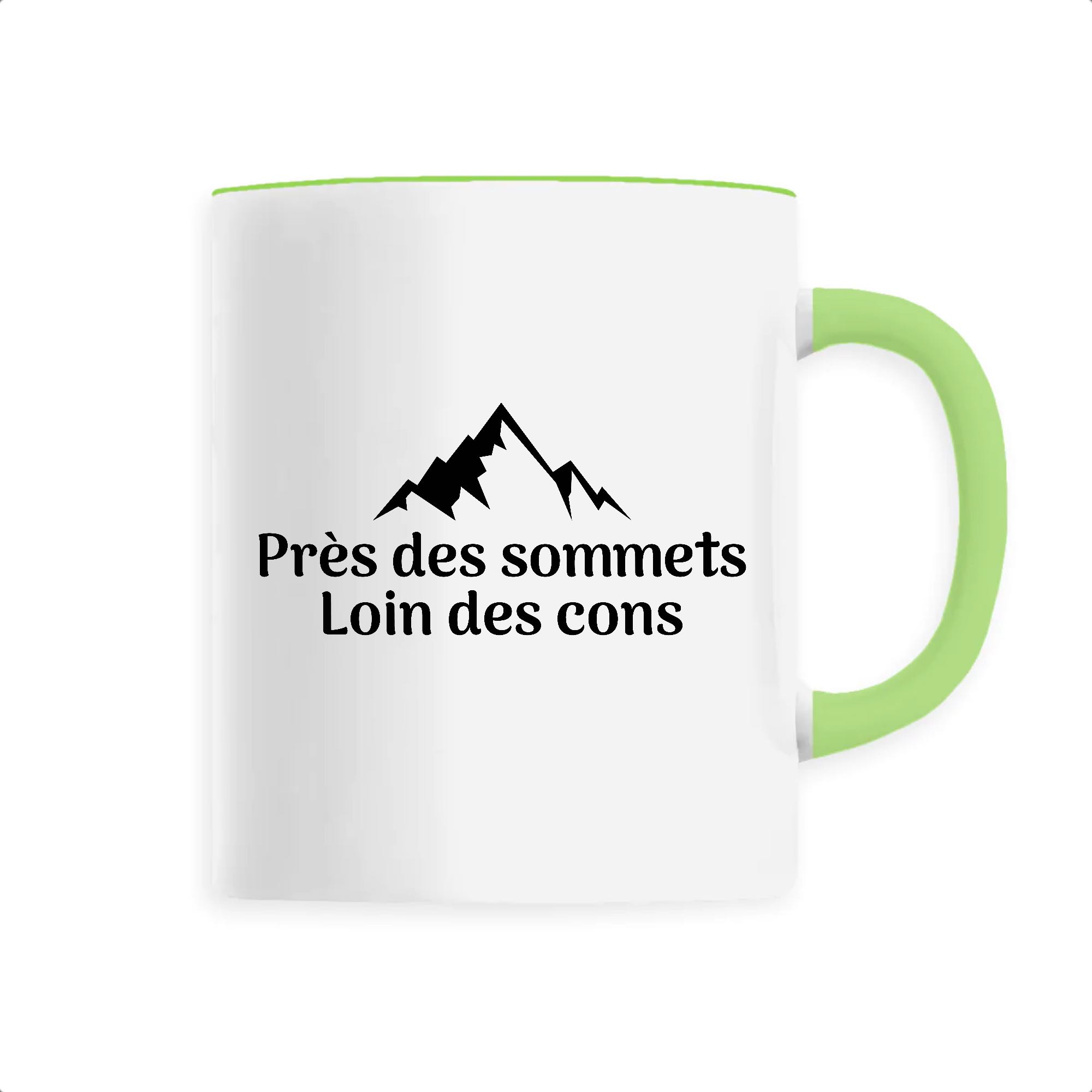 Évadez-vous avec notre mug « Près des sommets, loin des cons » et ajoutez une touche d’humour à vos pauses-café ! Idéal pour les amoureux de la montagne et des grands espaces, ce mug est une véritable invitation à savourer un moment de détente en hauteur. Arborant un design original et décalé, il affiche fièrement une belle montagne surplombée du texte humoristique « près des sommets, loin des cons ». Faites le plein d’énergie et de bonne humeur en sirotant votre boisson préférée dans ce mug unique en son genre.