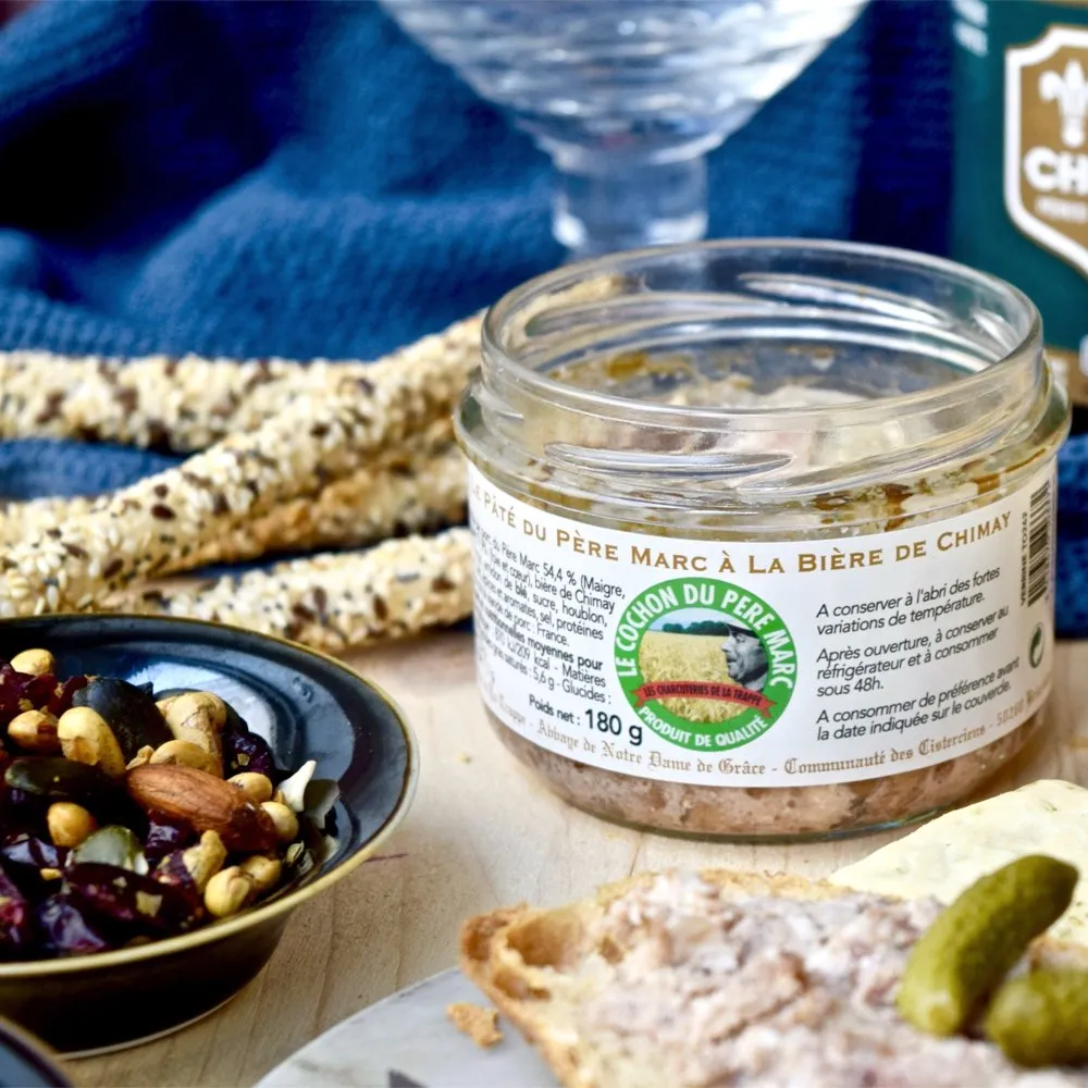 Parti d’une recette élaborée par ses soins il y a quelques années, le Père Marc a fait évoluer son pâté depuis quelques mois, en y ajoutant de la bière trappiste de Chimay. Savoureux et authentique, on est déjà conquis par cette nouvelle recette ! Chez Divine Box on le déguste sur une tartine de pain de campagne grillée et on l’accompagne d’une bière trappiste de Chimay, un délice ! ?