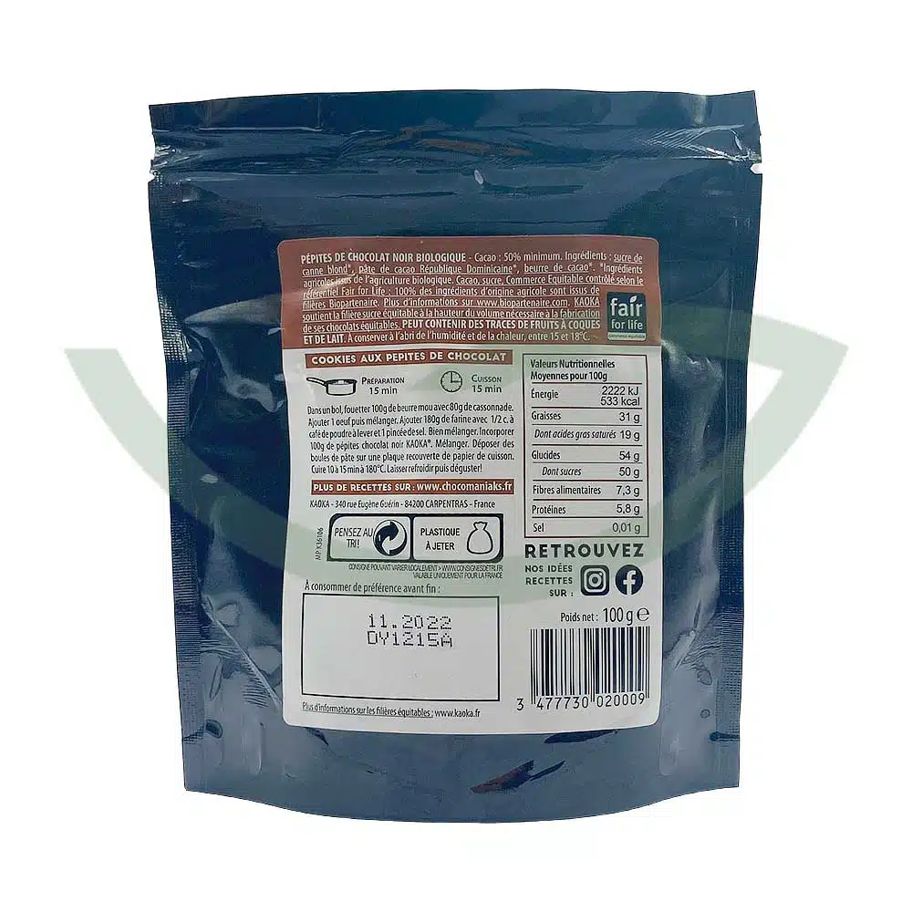 Caractéristiques des Pépites de chocolat noir 50% cacao 100 g de Kaoka