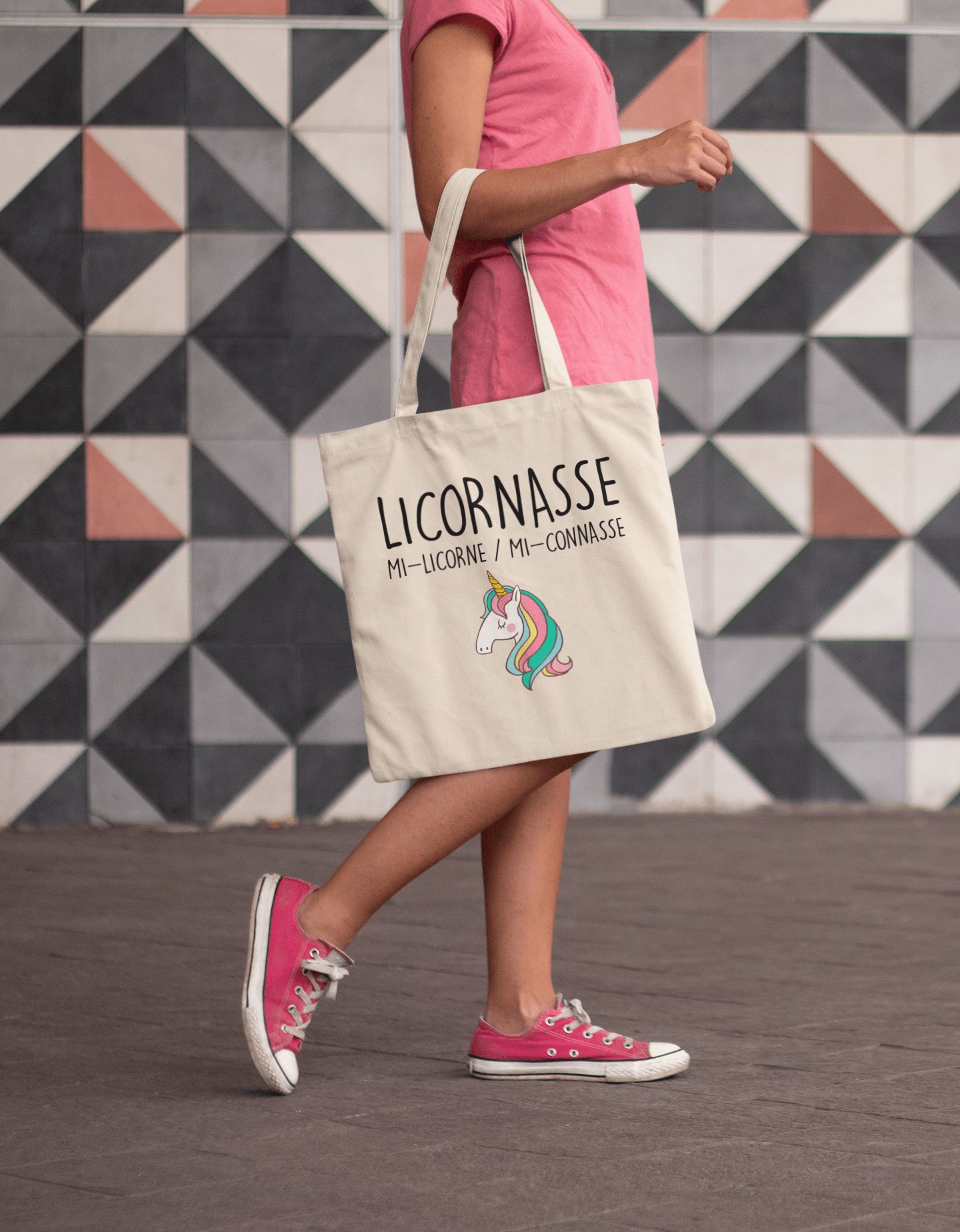 Si vous êtes à la fois une licorne et une connasse, on peut alors dire que vous êtes une licornasse. Ce tote bag licorne humoristique ravira les fans de cette créature légendaire à corne unique. Pour offrir ou vous faire plaisir ce sera un très bon choix. Bonne humeur garantie avec ce sac tote bag licornasse 🙂