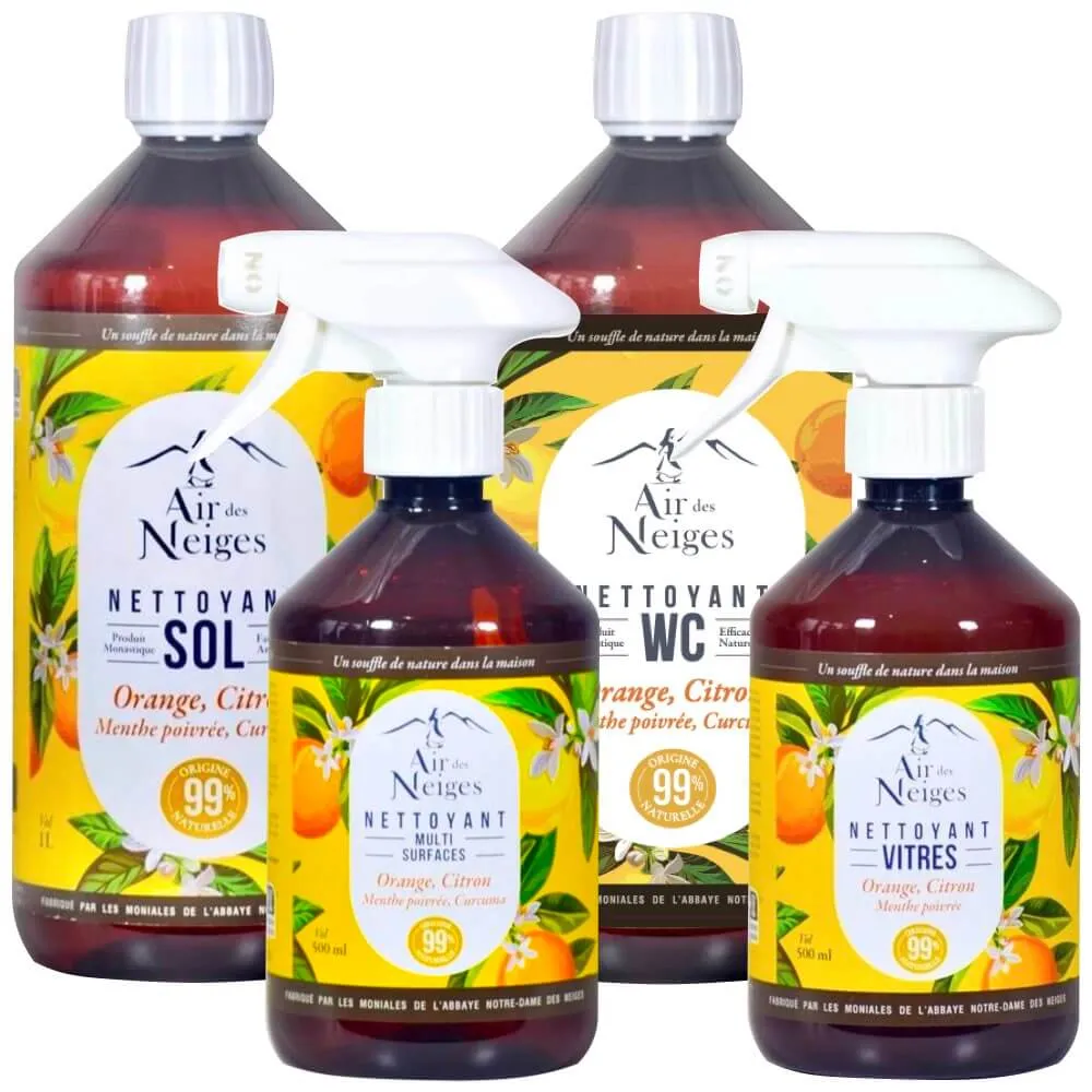 Les ingrédients 99,9% naturels de ce spray nettoyant vitres (Air des Neiges) sont simples : des plantes issues de l’agriculture biologique (huiles essentielles, hydrolat), et une petite touche originale : de l’eau de la source de l’abbaye ! Une recette efficace, naturelle et qui sent bon ! En effet, ce spray nettoyant vitres de l’abbaye des Neiges se décline en 3 parfums : « Agrumes » (orange-citron) pour une bonne odeur fruitée, « Thym – Menthe – Eucalyptus » pour avoir de la fraîcheur, et enfin « Lavande » qui vous téléporte en Provence en quelques « pschit » ! Pour l’utiliser, pulvérisez le produit à ≈ 20 cm de vos vitres (de maison ou de voiture) ou de votre miroir, et essuyez avec un chiffon propre et sec. Tadaaaam, ça brille ! ?