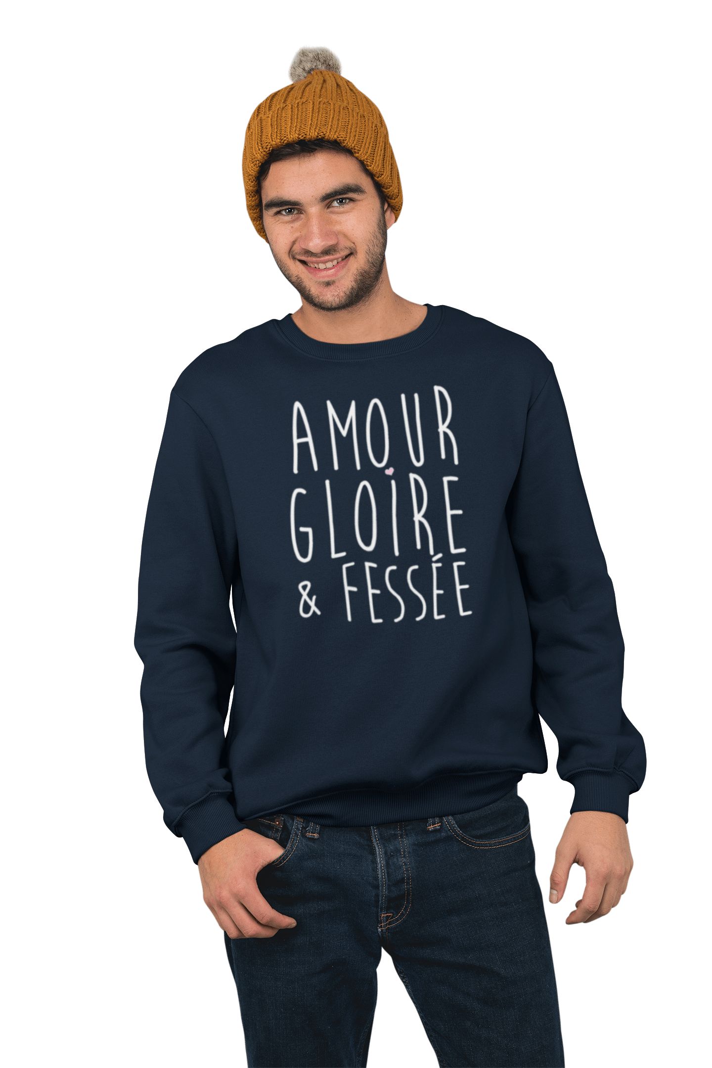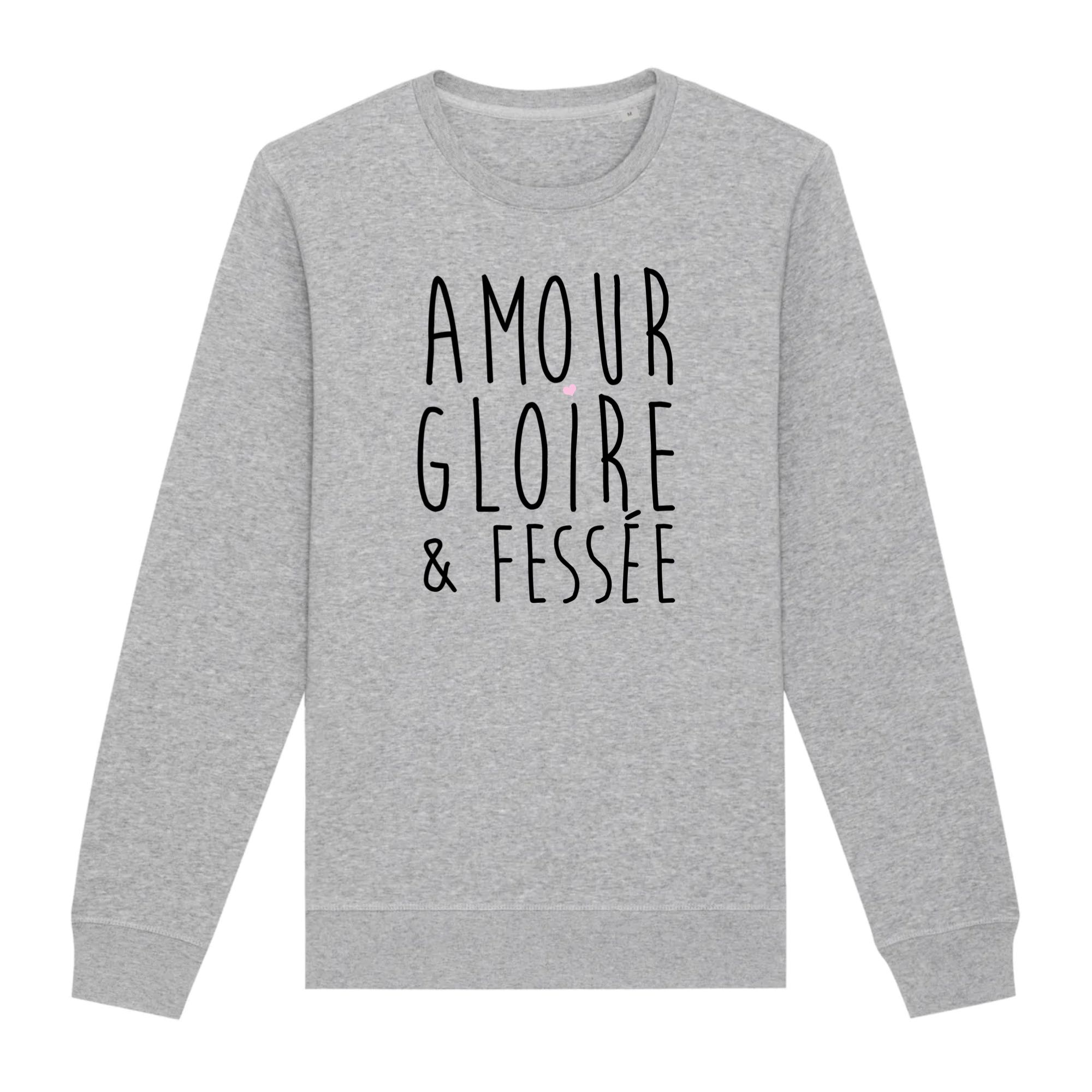 Normalement l’expression utilisée est: amour, gloire et beauté mais c’est quand même plus sympa avec une féssée non? Pour offrir ou vous faire plaisir ce sweat original sera un très bon choix. Bonne humeur garantie 🙂
