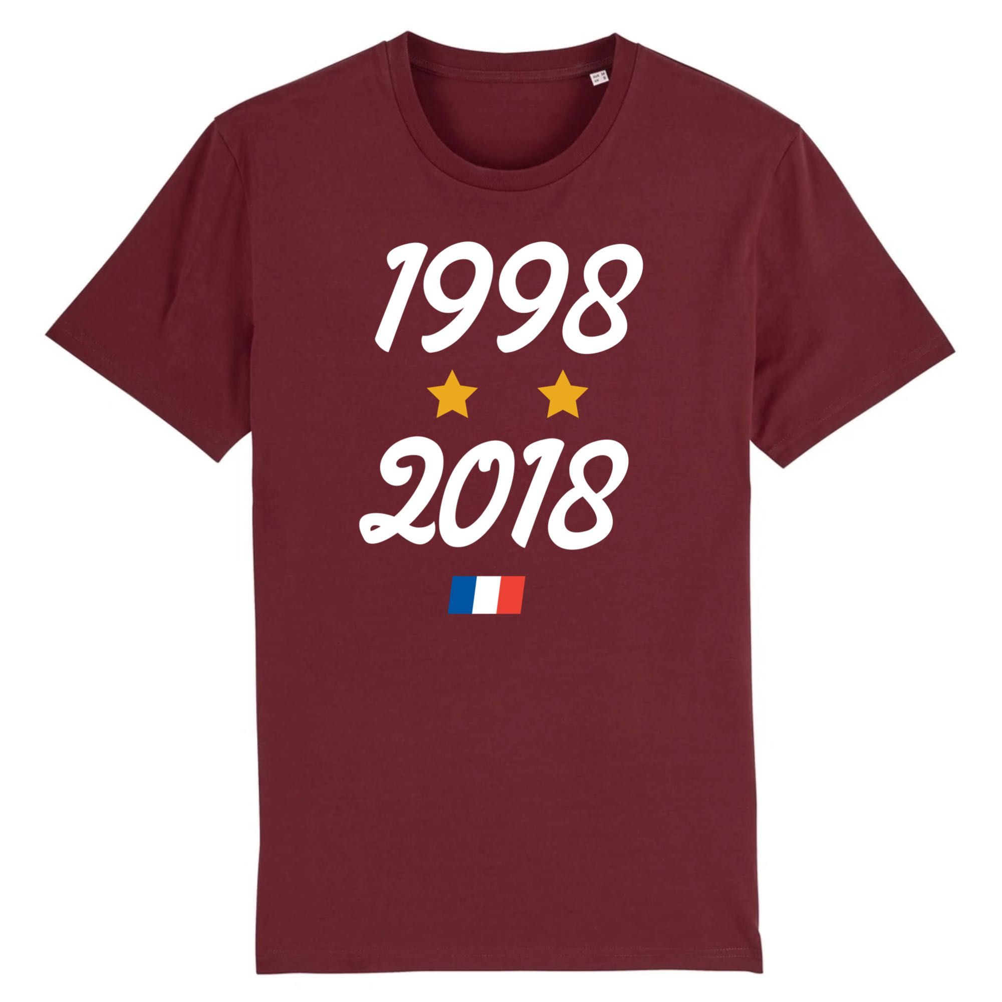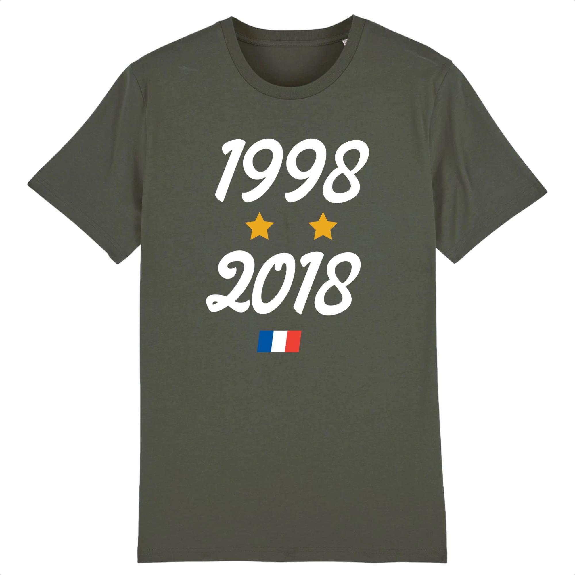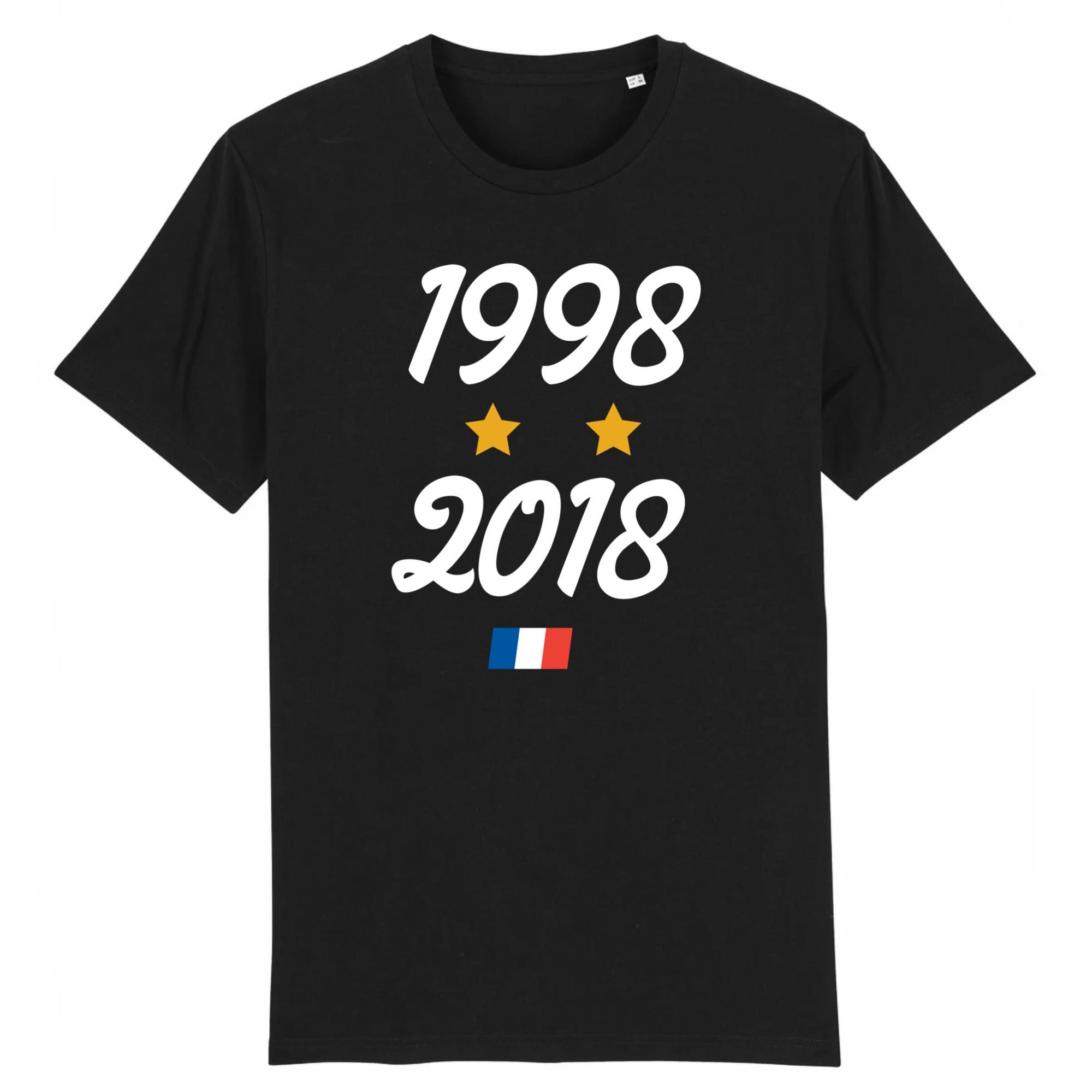 Évènement mémorable et marquant l’histoire, la France remporte la coupe du monde de football le 15 juillet 2018 à Moscou, pour la 2ème fois de l’histoire 20ans plus tard. Portez fièrement ce t shirt de champion du monde avec ces 2 étoiles jaunes et les années de victoires, 1998 et 2018. Pour offrir ou vous faire plaisir, ce t shirt foot sera un très bon choix. Bonne humeur garantie 🙂