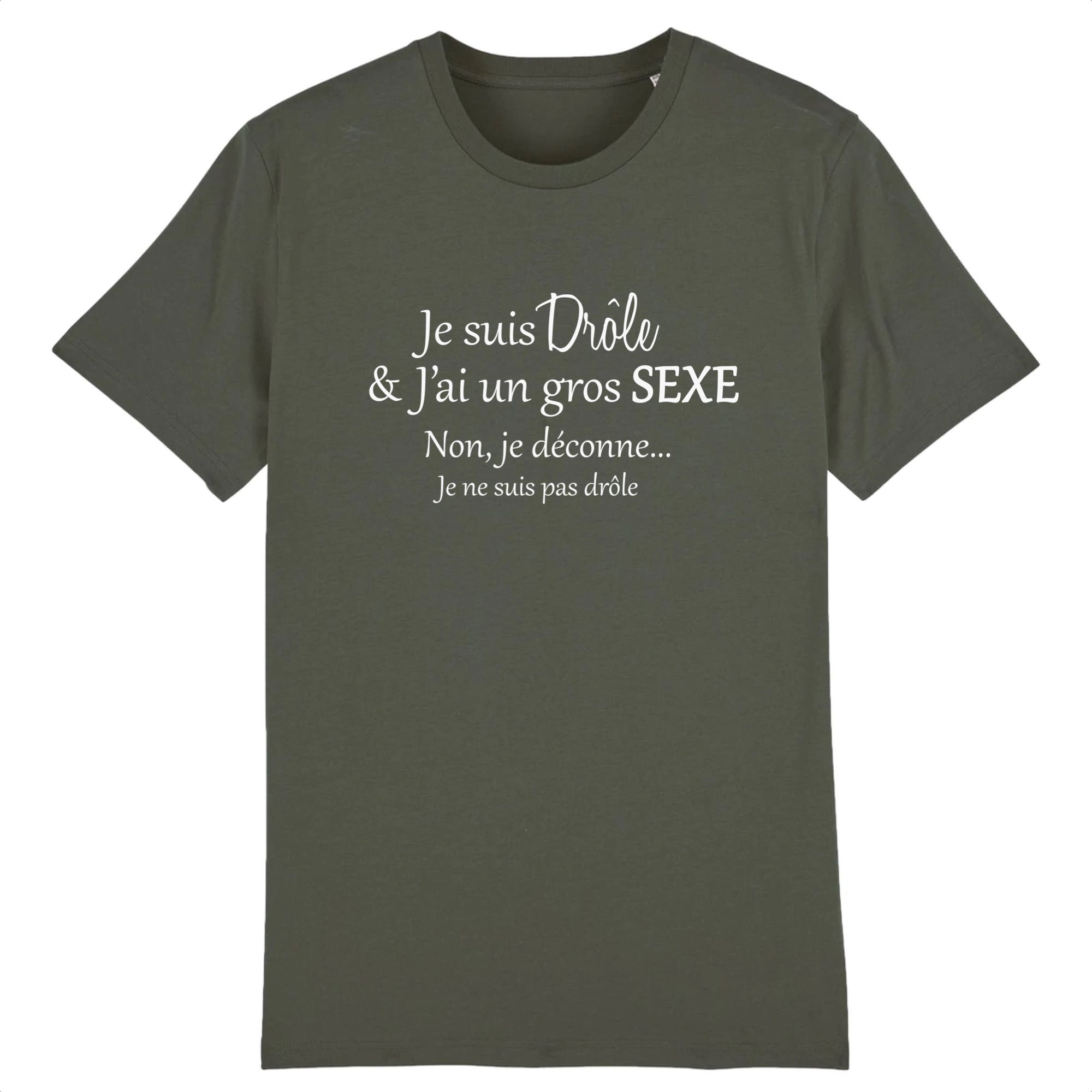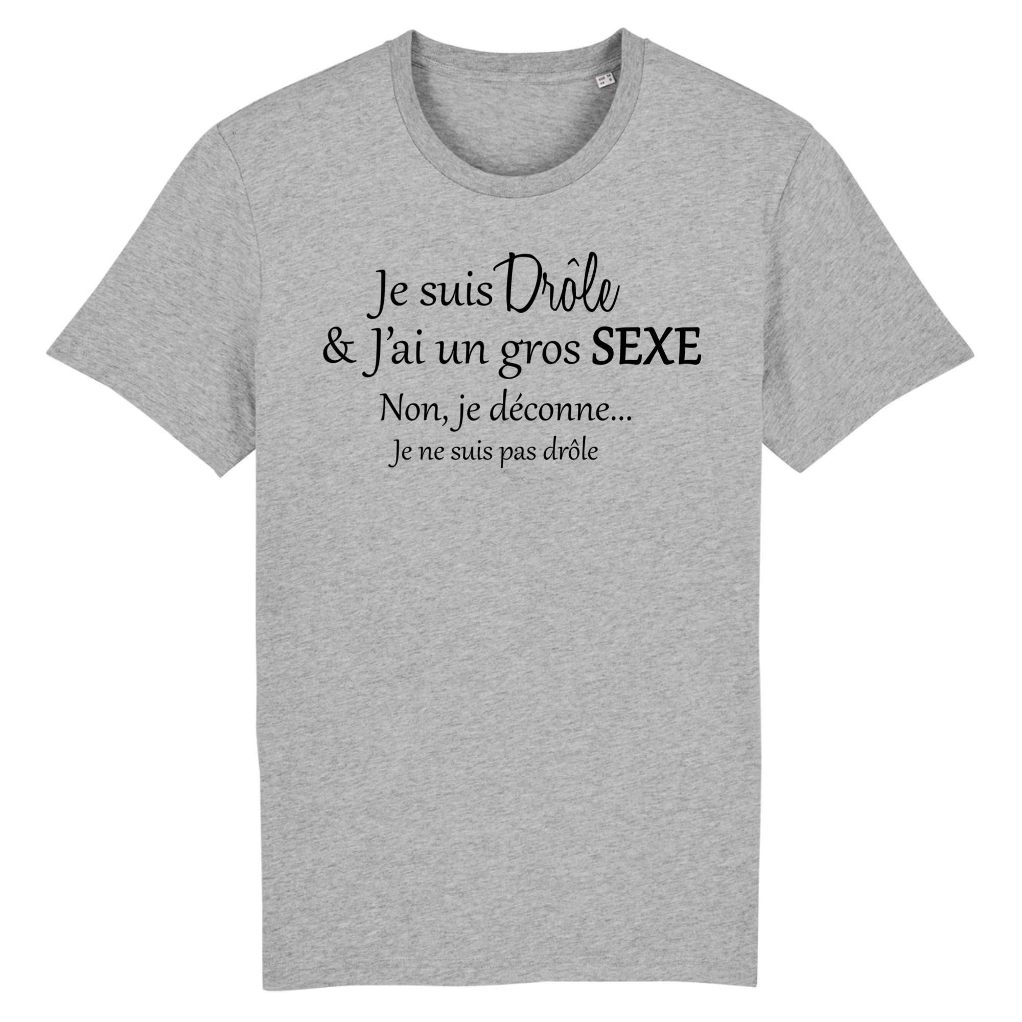 Les hommes adorent en général se vanter de la taille de leur penis, et en général ils aiment dire qu’ils ont un gros sexe. Ce tee shirt à message vous conviendra parfaitement si vous avez un énorme sexe et que vous voulez faire passer un petit message sympathique… Si vous n’avez pas la chance d’avoir un gros penis, pas de panique, n’ayez pas honte de la taille de votre zizi, justement il vous suffira juste d’un peu d’humour et de prétention pour le porter! 🙂 Que ce soit pour offrir en cadeau ou pour vous faire plaisir, ce tee shirt hors du commun surprendra et fera rire! Bonne humeur garantie.